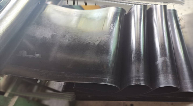 此外,為了便于膠帶化合物在輥間的順利傳遞,也需要在輥間保持適當的溫差。例如,天然橡膠很容易包裹熱輥。當薄膜從一個滾筒轉移到另一個滾筒時,另一個滾筒的溫度應適當地提高,而合成橡膠則正好相反。軋輥之間的溫差一般在5-10℃之間,耐熱輸送帶復合具有較大的塑性、良好的鈣化流動性、半成品的低收縮率和光滑的表面;但它過于塑性,容易產生軋輥粘粘現象,影響了操作