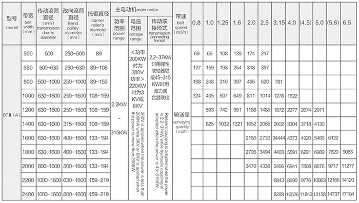DT II(A)膠帶輸送機技術參數